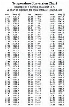 使用等效温度表(Temp Equivalent Table,右图),将TempCHEK测温块的直径转化为等效温度(温度恒温保持1小时);(或者用游标卡尺,精确到0.01mm)